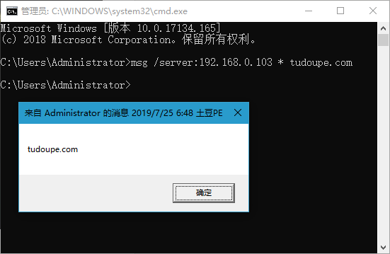 回车后对方屏幕即可弹出消息。由于MSG属于系统级指令,一般的安全软件不会拦截,成功率极高哟!