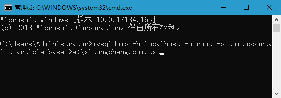 mysqldump -h localhost -u root -p tomtopportal t_article_base >e:\xitongcheng.com.txt