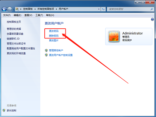 6、 在控制面板中,点击“用户账户”,随后你可以进行密码“修改”或“删除”,但是注意这些需要原密码,如果你实在记不起密码,可以暂时使用aaa账户,之后再处理原有账户的密码
