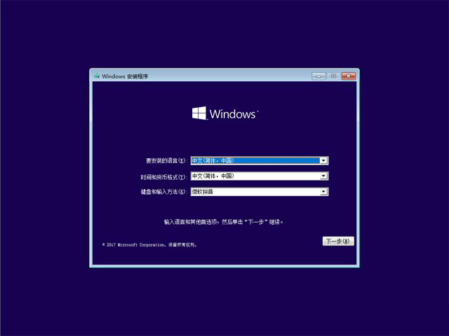 2、接着会启动安装程序,进入这个界面,选择安装语言、时间格式、键盘输入法,点击下一步;