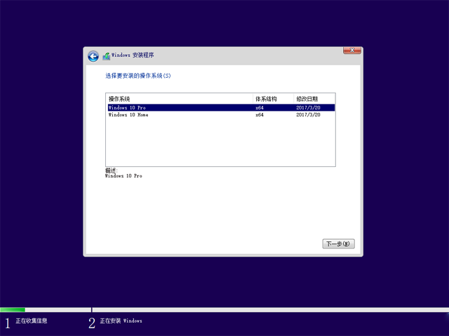 5、如果是Multiple版本,包含有2个版本,pro是专业版,home是家庭版,选择跟预装win10同样的版本,一般是家庭版,点击下一步;