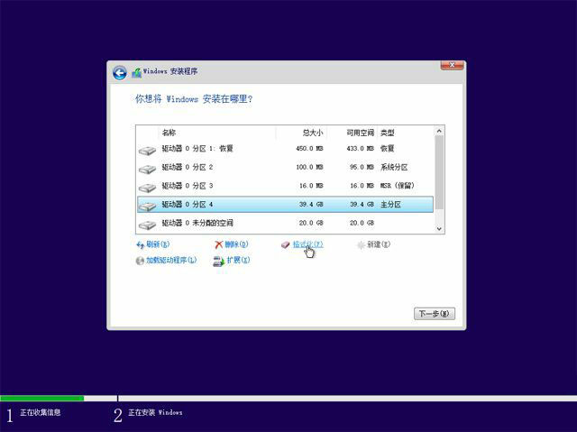 11、这边就建立了一个主分区,以及其他的额外分区,uefi模式下会有MSR保留分区,gpt分区表都会这样,选择主分区,点击格式化,然后按同样的步骤,新建其他的分区;