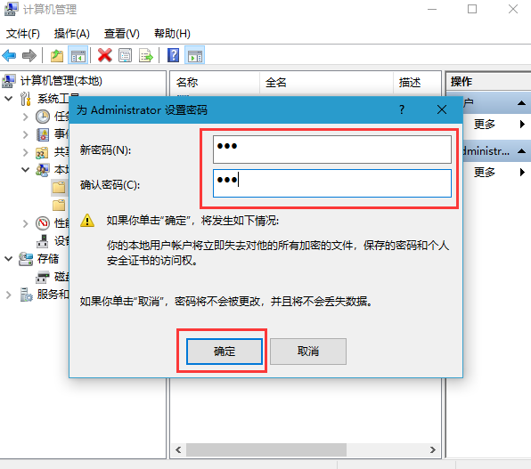 5、输入新密码两遍,再点击确定,设置成功。如图所示: