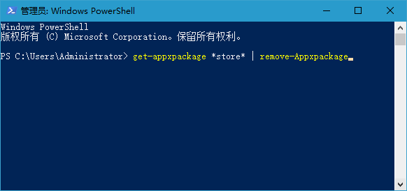2、复制以下命令并执行:【get-appxpackage *store* | remove-Appxpackage】