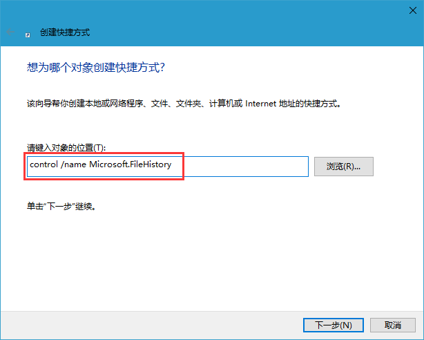 Win10系统添加文件历史记录快捷方式的技巧