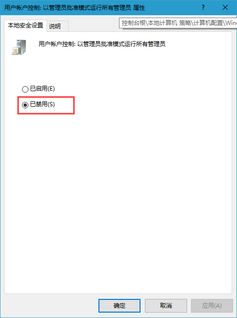3、然后选择“已禁用”,点击确定,完成设置后重启计算机,即可修改盘符名字。