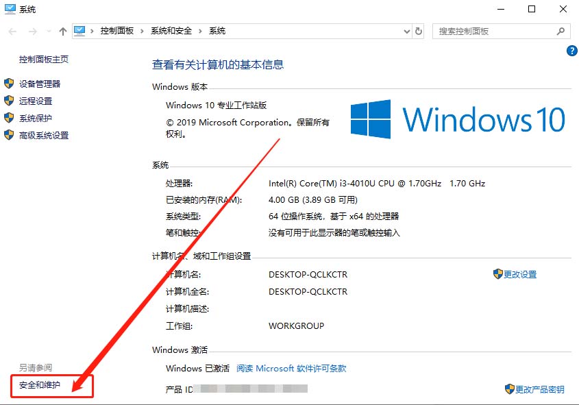 2、然后点左下角的“安全和维护”,再继续点击“更改安全和维护设置”。