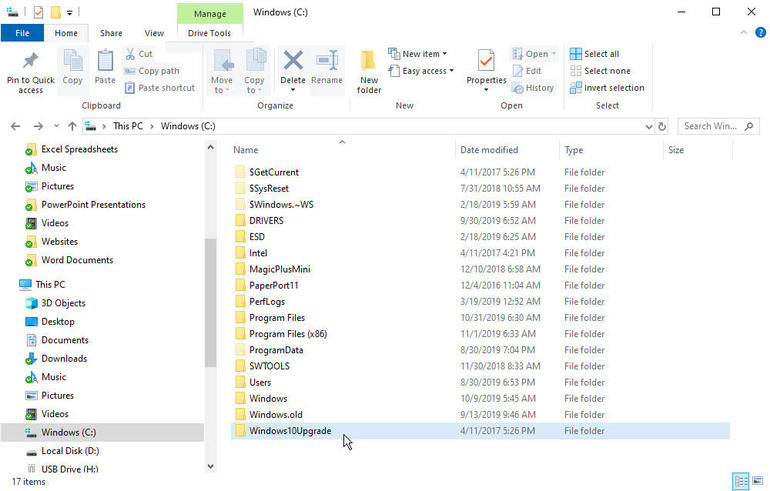 1、安装最新的Win10主要更新之后,打开File Explorer到C驱动器或任何装有Windows的系统驱动器的根目录。您应该找到两个文件夹:Windows.old和Windows10Upgrade。如果您需要返回Windows.old文件夹,它将存储以前Windows安装中的所有文件。 Windows10Upgrade文件夹由Windows Update Assistant生成并用于执行实际更新