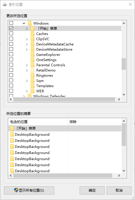 7、之后,开始菜单中的程序项目就都添加到索引了,另外,还可以根据需要添加其他位置的索引,参考以上方法操作即可。