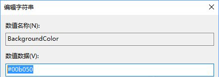 3、在打开的编辑对话框中,将数值数据的键值修改为“#00b050”,其中“#00b050”为绿色值,再点击“确定”按钮;