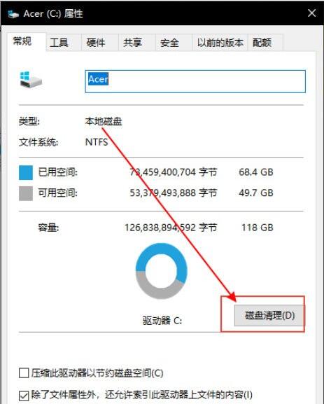 2、选择清理磁盘,点击磁盘清理;如图所示: