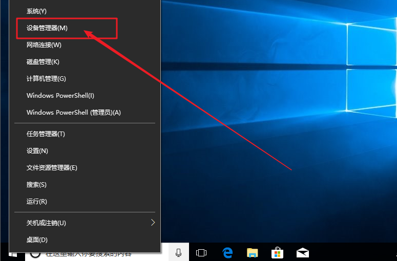 1、按下Win+X组合键,唤出隐藏菜单,点击里面的“设备管理器”。