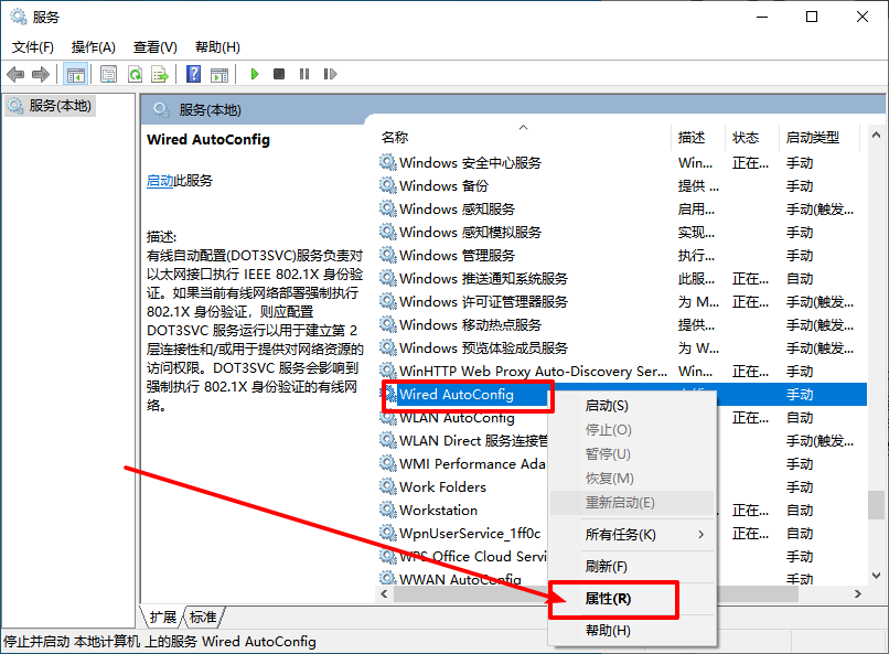 3、在服务窗口的右侧页面,找到并右键“WLAN AutoConfig”,选择“属性”
