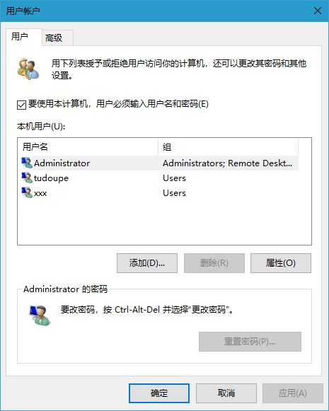 2、可以看到“要使用本计算机,用户必须输入用户名和密码”被勾选中了,将这个勾选去掉。