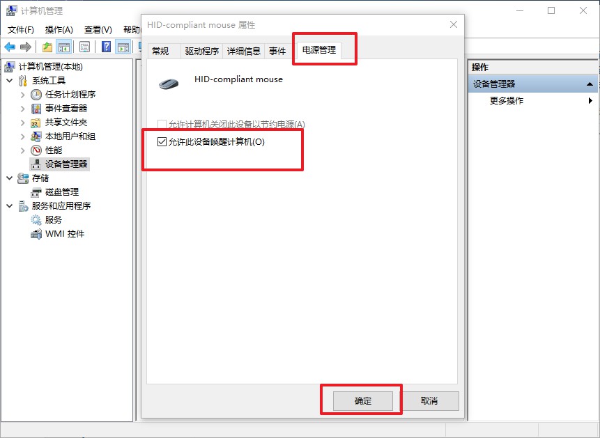 3、在属性的电源管理标签下,勾选“允许此唤醒计算机”选项,然后点击确定退出就可以了。