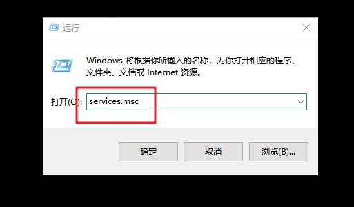 3、按下【Win+R】打开运行输入【services.msc】点击【确定】打开服务;