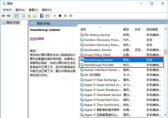 4、将【HomeGroup Listener】和【HomeGroup Provider】的启动类型,都设置为【禁用】;