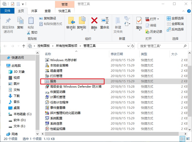 2、在“管理工具”中打开“服务”。