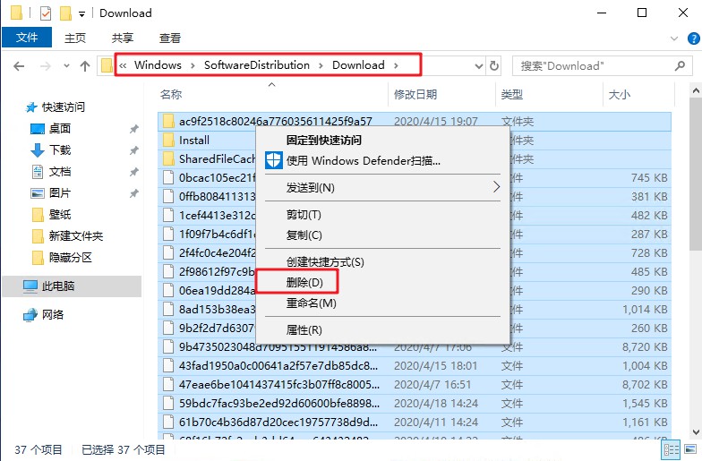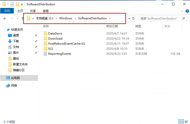 1、进入到C:\Windows\SoftwareDistribution目录下。