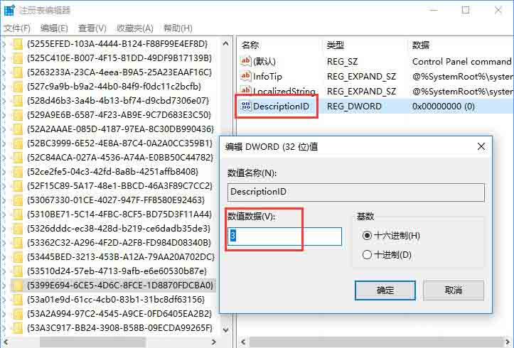 【HKEY_CLASSES_ROOT\Wow6432Node\CLSID\{5399E694-6CE5-4D6C-8FCE-1D8870FDCBA0}】,新建DWORD(32位)值,命名为【DescriptionID】,双击打开并将数值数据设置为【3】