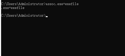 2、在里面输入assoc.exe=exefile然后回车,返回到桌面再次尝试点击桌面图标。