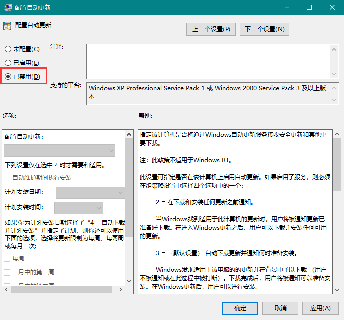 3、点击左上角“已禁用”,然后点击“确定”就禁止自动更新了。