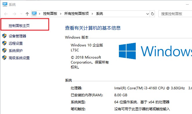 1、 右击此电脑“属性”,点击左上角的“控制面板主页”