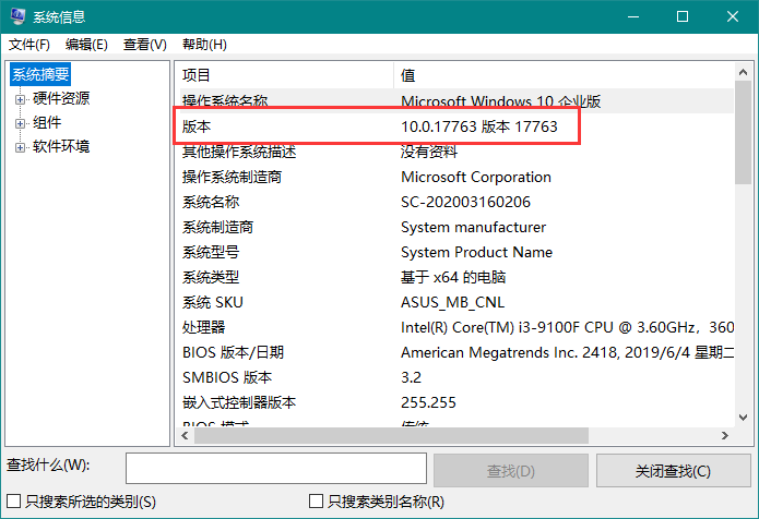 2,在打开的系统信息窗口即可查看电脑系统版本号。