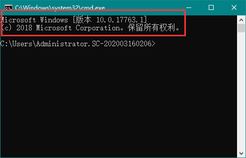 2,在打开的命令符提示窗口顶部可以查看到电脑版本号。