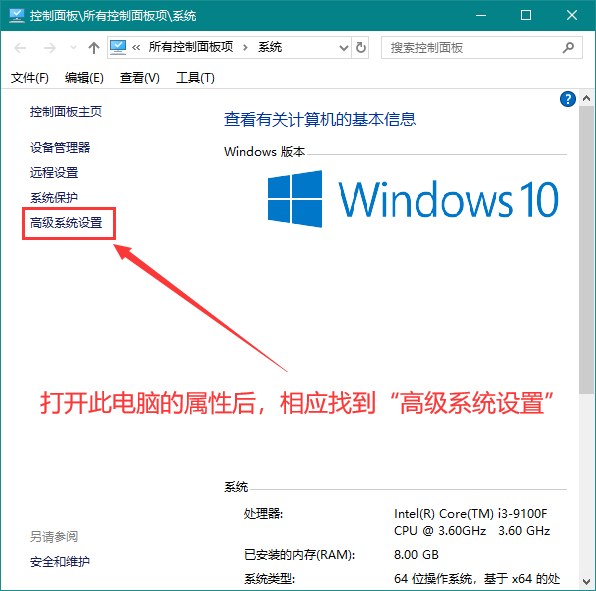 1、对着计算机,右键,属性。在左侧打开高级系统设置。