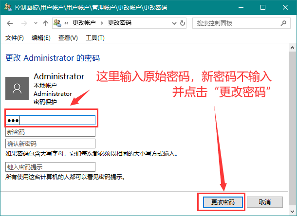 5、输入当前密码后,其他的一个都不要填写,后点击更改密码即可。