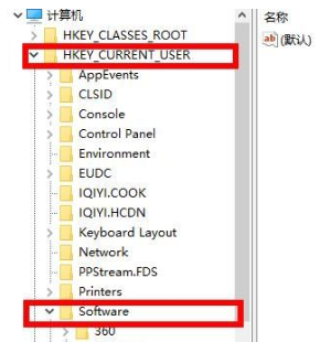 2、打开下拉 HEKY_CURRENT_USER—>Software 。