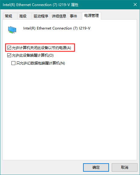 5、在打开的页面中,切换到“电源管理标签”,将"允许计算机关闭此设备以节约电源"前面方框中的勾选去掉,最后点击确定按钮即可。
