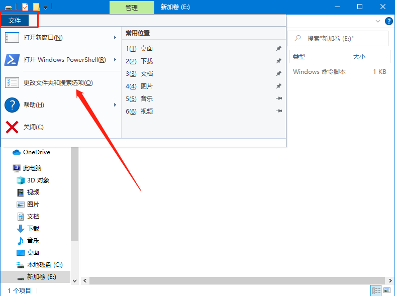 2、接着在界面选中文件,再点击更改文件夹和搜索选项。