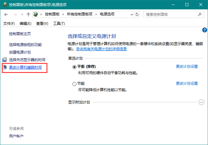 4、然后我们需要点击左侧“更改计算机睡眠时间”。