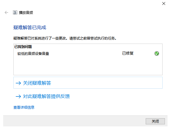 3、如果疑难解答没有检查出相关的声音问题,在详细的检查报告中也没有给出任何修改建议,那么我们可以考虑使用另一种办法。