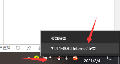 1、右键点击桌面右下角的--网络--图标,然后点击“打开网络和internet设置”,然后点击更改适配器选项;