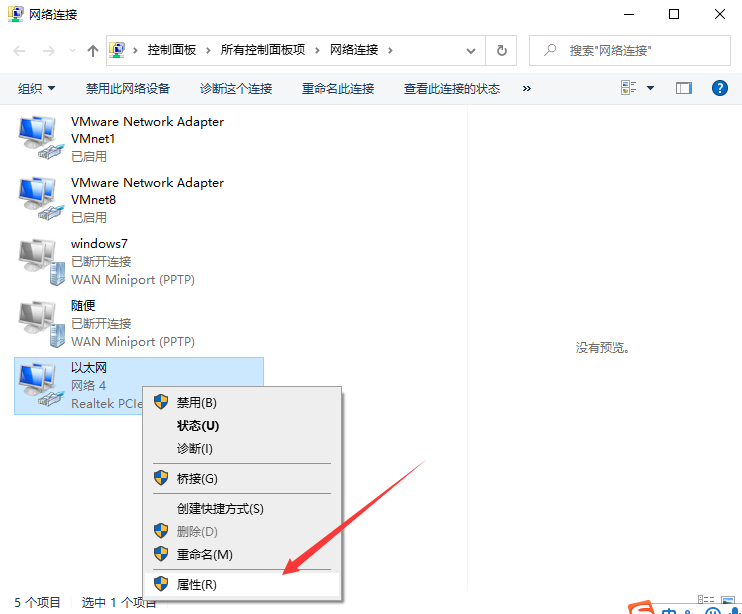 2、进入网络列表界面,找到当前正在连接的网络,右键点击选择--属性--;