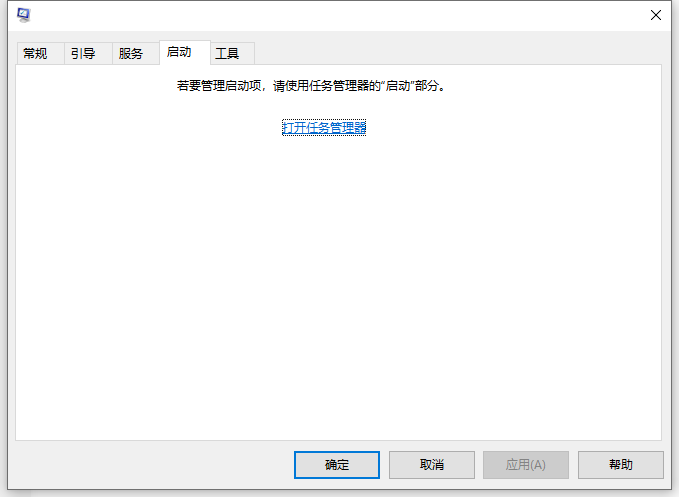 3、点击 “启动” 选项卡,点击 ”打开任务管理器”,然后禁用全部启动项并确定。