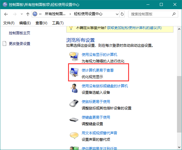 2、点击“使计算机更易于查看”。