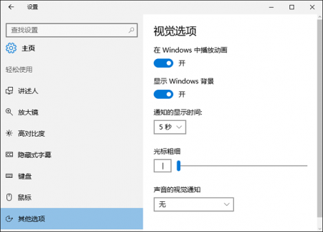 在大家使用win10系统的 Win+PrtSc键截 屏时,如果不变暗的话,我们就不知道截屏是否成功,那么如何开启这一功能呢? 1、首先进入设置 -轻松使用 -其他选项,在右侧窗格的视觉选项中看...