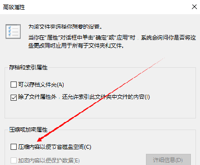 1.右键需要使用压缩保存的文件夹,打开其属性; 2.在属性界面点击高级选项; 3.在高级选项中勾选压缩内容一遍节省磁盘空间,然后点击确定,将压缩范围应用到子文件夹中,点击确...
