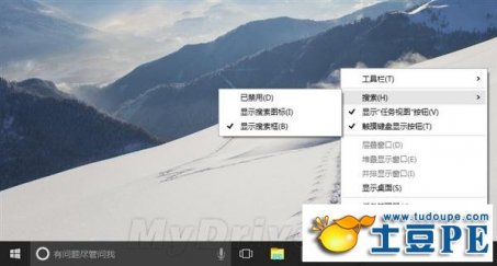 关闭Win10搜索框方法
