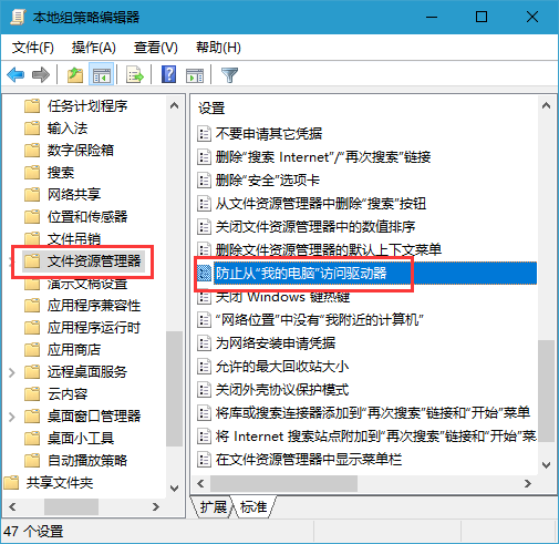 Win10电脑系统限制用户禁止访问磁盘内容的方法