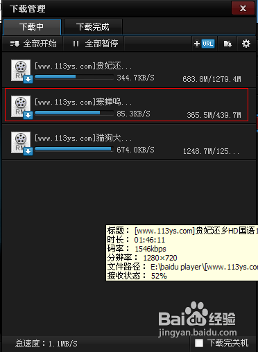 这时候百度影音才识别您复制到下载文件夹中的那个文件,接着未下载完成的继续下载。