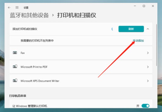 4、 如果你发现设备选项中,没有你需要的打印机和扫描仪,可以自行手动添加