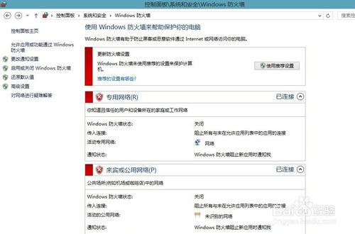 自定设置下分别点击专用网络设置【关闭Windows 防火墙】和公共网络设置【关闭Windows 防火墙】单选框。再点击确定。这样就关闭了Win8的防火墙。