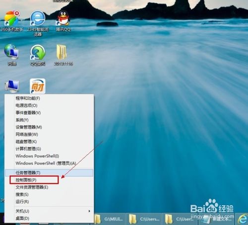 在开始的位置的地方点击鼠标右键。选择【控制面板】