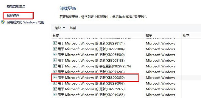 选择KB3000850补丁,点击“卸载程序”即可完成卸载。