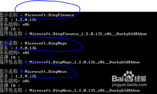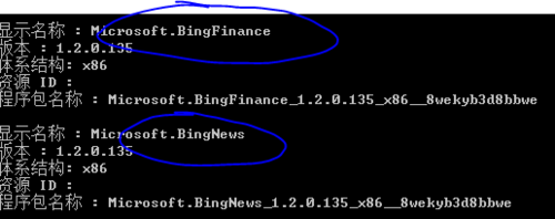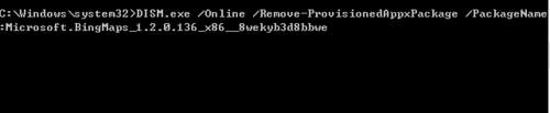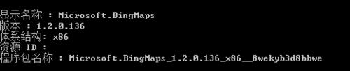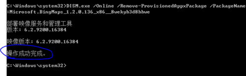 6、记录下(可在命令提示符中“右键-标记-回车”进行复制)该程序包名称,继续输入命令“DISM.exe /Online /Remove-ProvisionedAppxPackage /PackageName:Microsoft.BingMaps_1.2.0.136_x86__8wekyb3d8bbwe”(按照命令内容,替换相应程序包名称),如下图所示:
